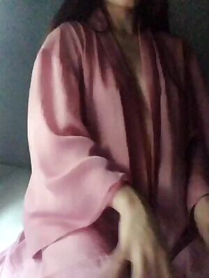 LF color source: 1girl, cream?, , brown eyes, brown hair, long hair, lingerie