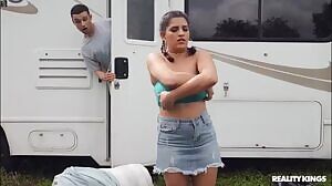 Spring Break Slut Fucked in Van at Public Beach - POV